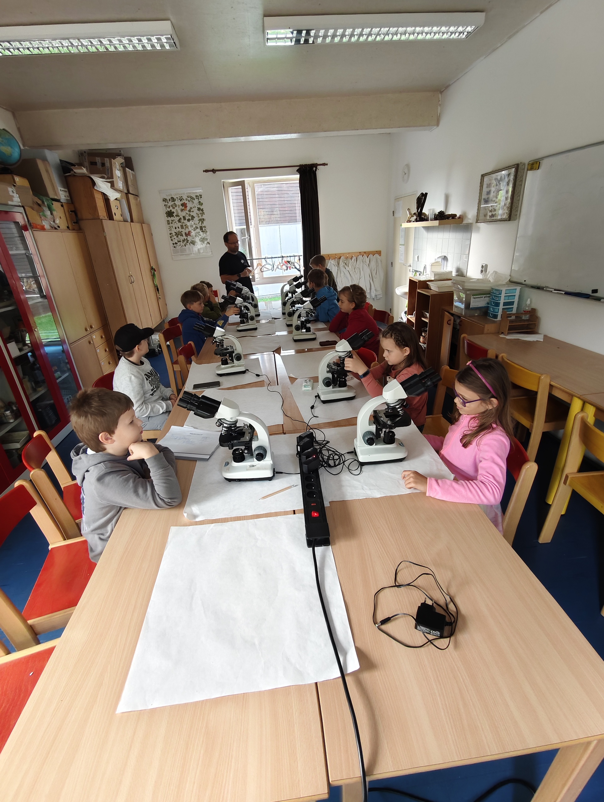 Navštívili jsme Stanici přírodovědců na Andělu v Praze. První skupina se věnovala práci s mikroskopem, kde si žáci mohli prohlédnout velmi zblízka sinice, veš, klíště nebo roztoče. Učili se pracovat s mikroskopem. Druhá skupina mezitím absolovovala procházku po areálu. kde se děti dozvěděly zajímavosti o plazech, papoušcích, hraboších, hlodavcích. malých opicích a klokanech. Později se skupiny vyměnily.