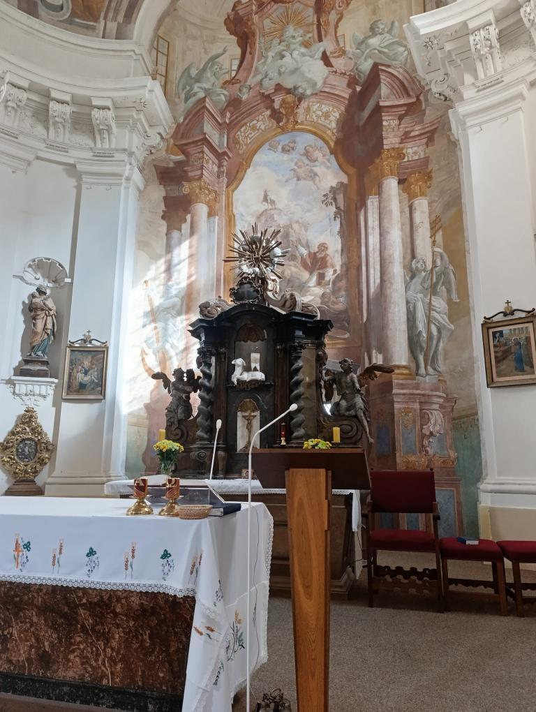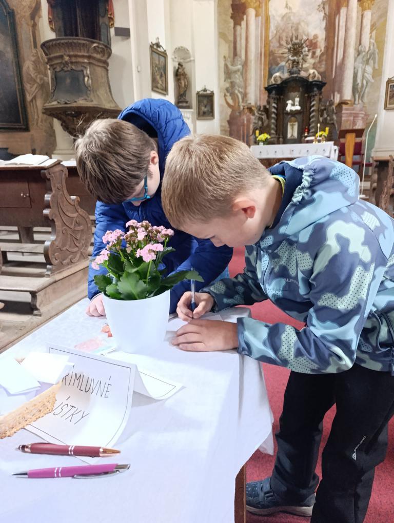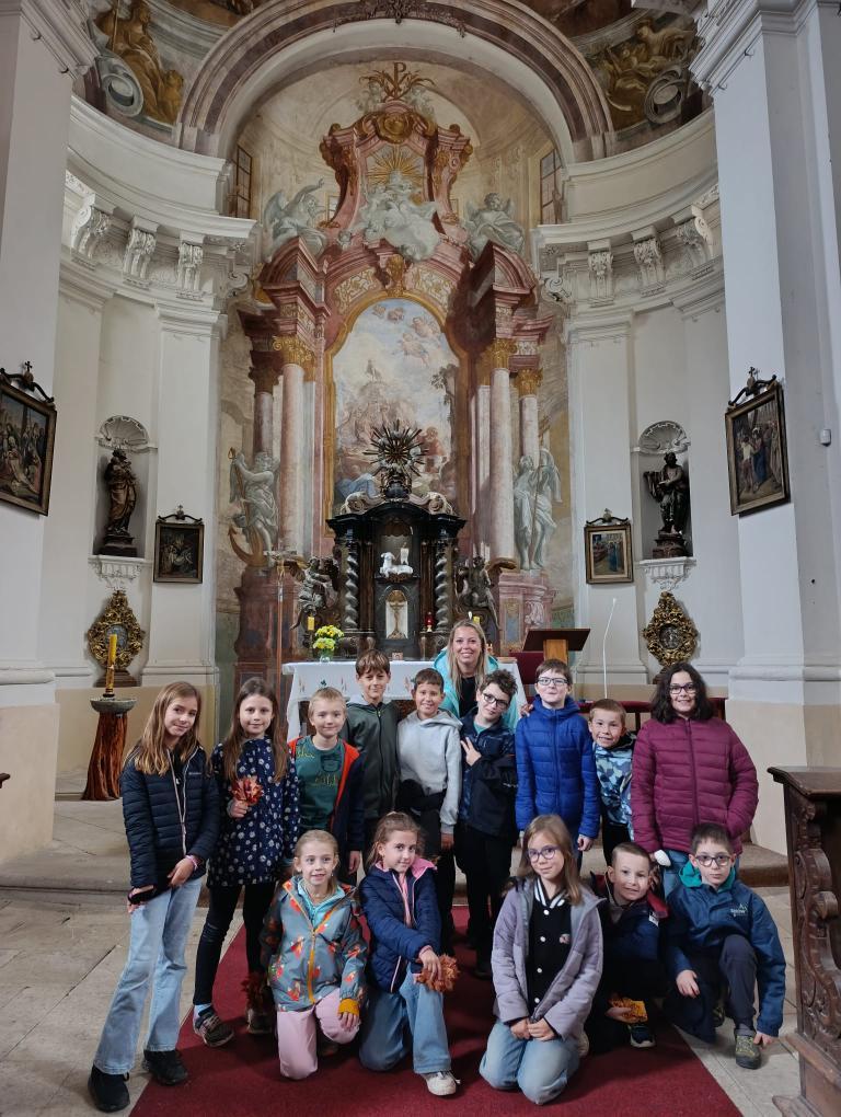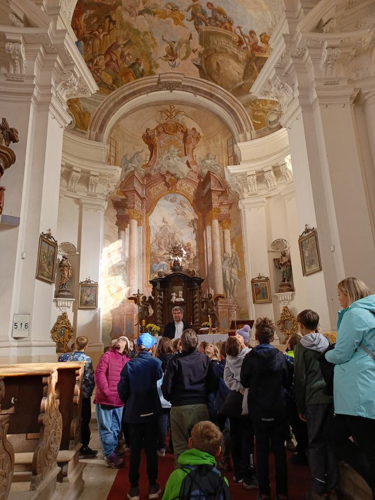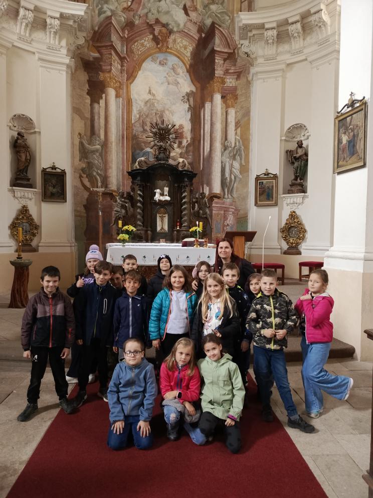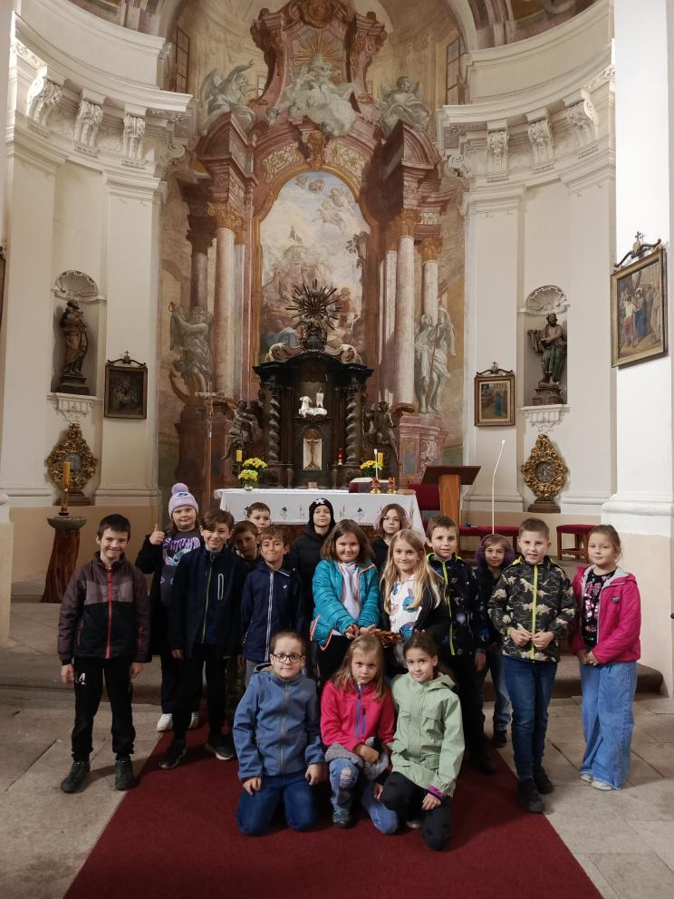Po příchodu nás přivítal pan farář, který si pro nás připravil zajímavý a poutavý výklad. Vyprávěl o tom, kdy byl kostel postaven, jak se měnil v průběhu let a co všechno se zde odehrává během roku. Děti se dozvěděly, že kostel není jen místem bohoslužeb, ale i prostorem setkávání lidí, pomoci druhým a klidu.